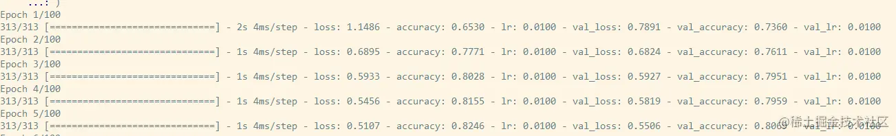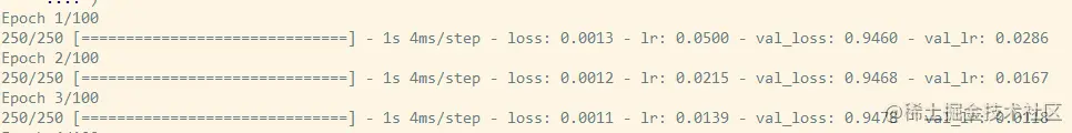 然而,看一下Keras的训练进度,我们注意到不同的数值,在第一个历时之后,学习率已经从0.1降低到0.0286。