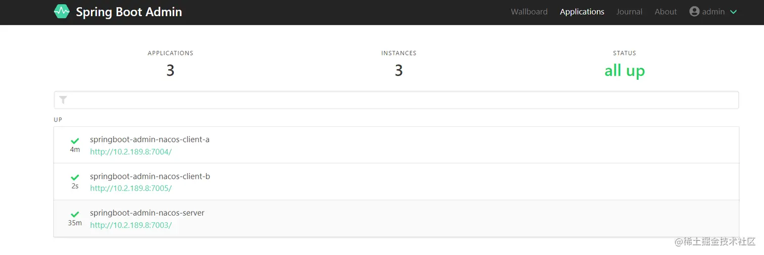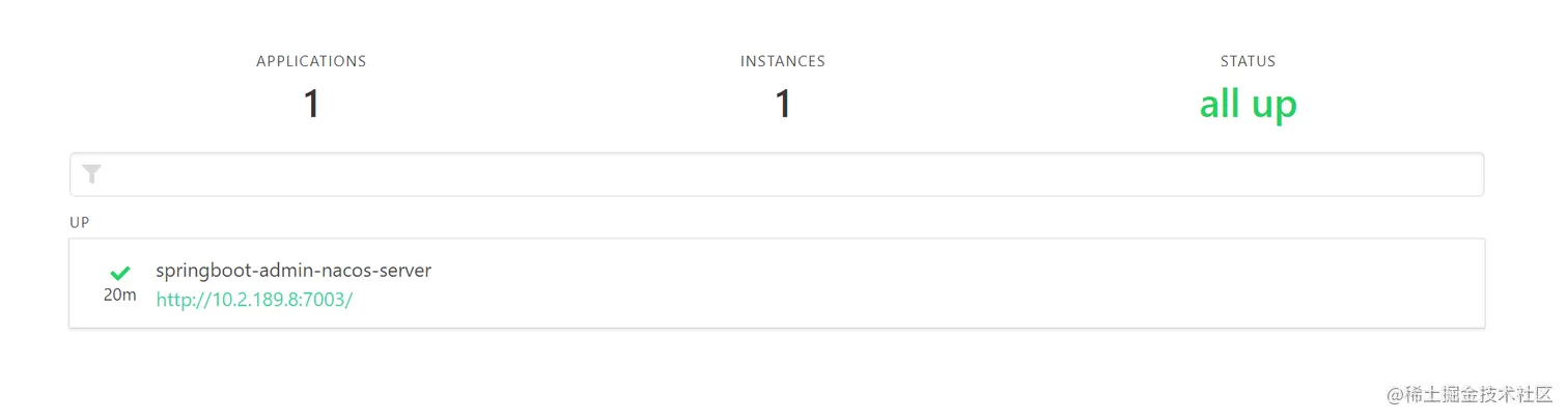 启动后,访问: http://localhost:7003/springboot-admin-nacos-server/#/applications