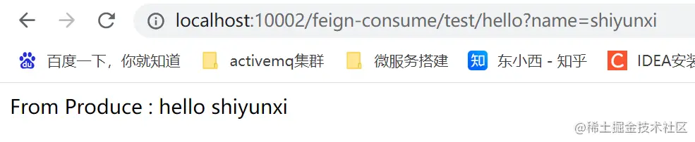 请求: http://localhost:10002/feign-consume/test/hello?name=shiyunxi ,测试接口
