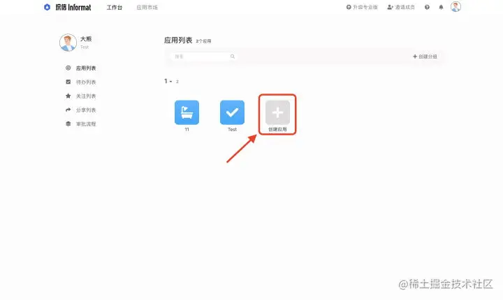 1、创建团队、应用