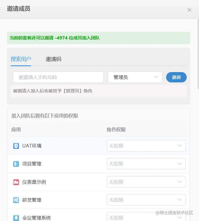 点击数据表设置的图标,进入对表格进行设置,可自行设置显示风格、字段、排序、数据权限等操作。也可根据需求选择需要展示的字段。在邀请成员的同时,也可以对其进行应用、权限、身份的精细化设置。具体可参考低代码操作文档地址: