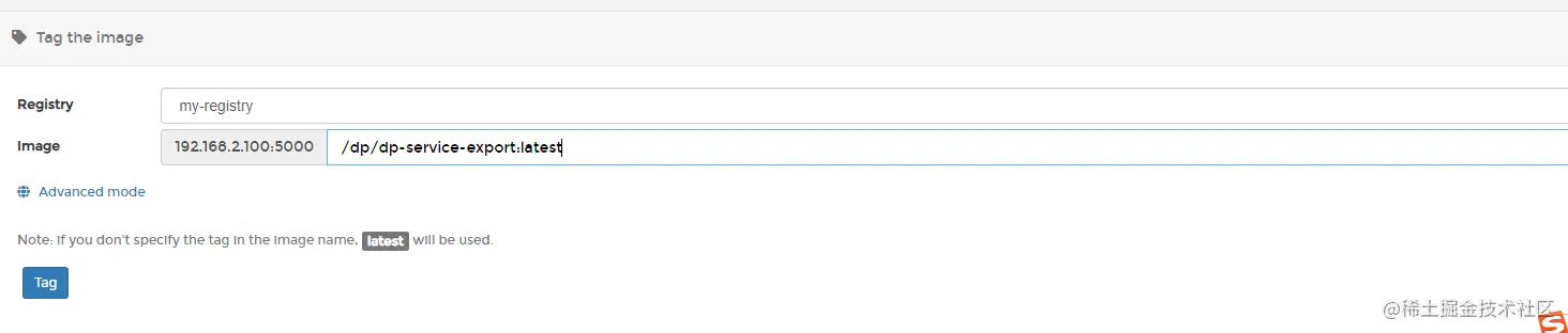 docker tag dp/dp-service-export:latest 192.168.2.100:5000/dp/dp-service-export:latest