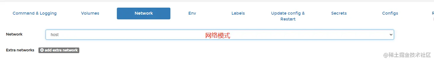 - --network:当前使用Host模式,采用宿主机网络。