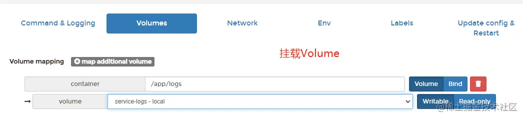 --mount type=volume,source=service-logs,destination=/app/logs \