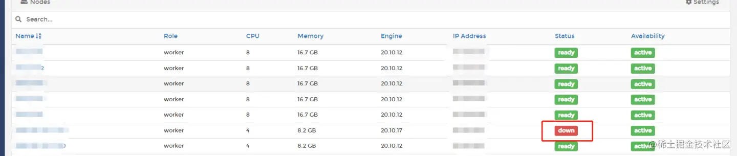 节点一直处于Down Status