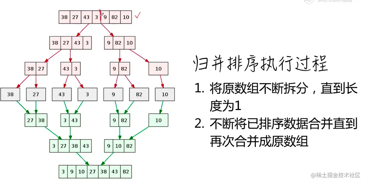 merge_sort(A, p, q) // 递归将左边数组拆分