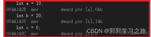 mov dword ptr [c],0 //将0存储到0的地址处,0的位置其实是c变量