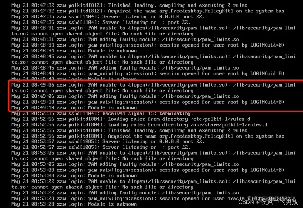 最终发现是/lib/security/pam_limits.so这一部分问题