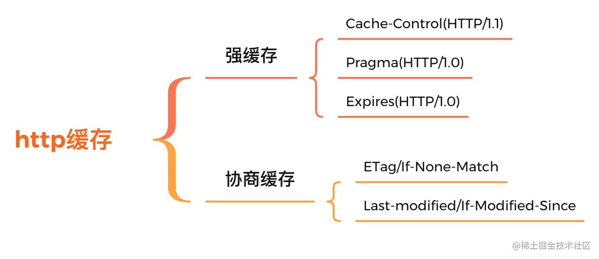 HTTP/1.0提供了Pragma及Expires的缓存字段,到HTTP/1.1扩展了更多头字段Cache-Control、Last-Modified / If-Modified-Since, Etag / If-None-Match等。