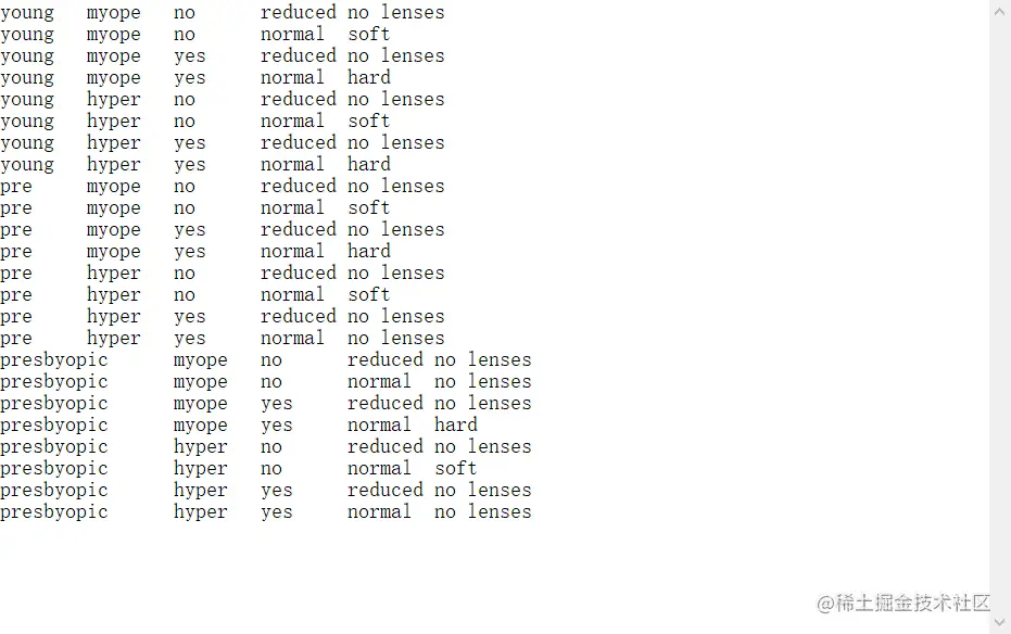 lensesLabel = ['age','prescript','astigmatic','tearRate']