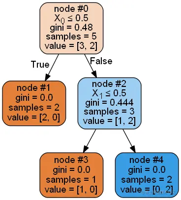 首先看一下sklearn的决策树建模与绘图效果,数据还是上一篇里最基础的判断是否为鱼的数据: