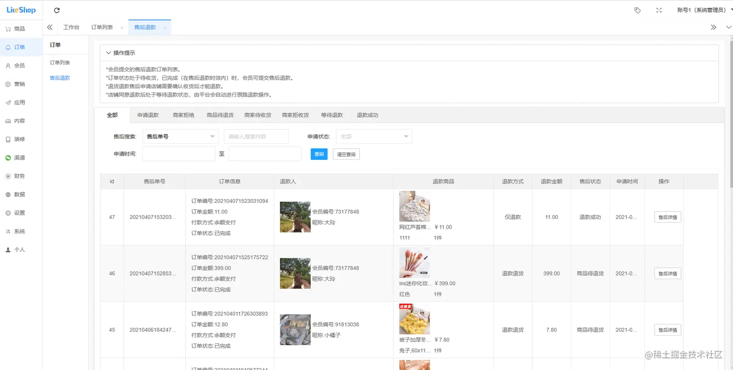 - 售后退款:用户在付款后申请退款或商家发货后用户申请退换货