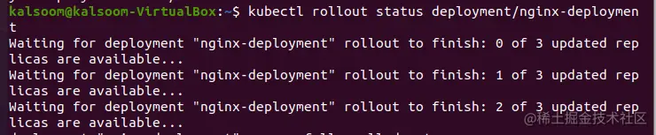 $ kubectl rollout status deployment/Nginx-deployment