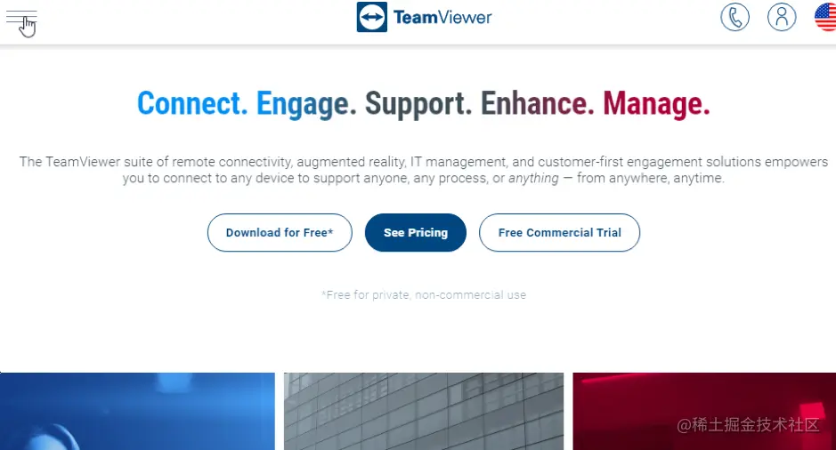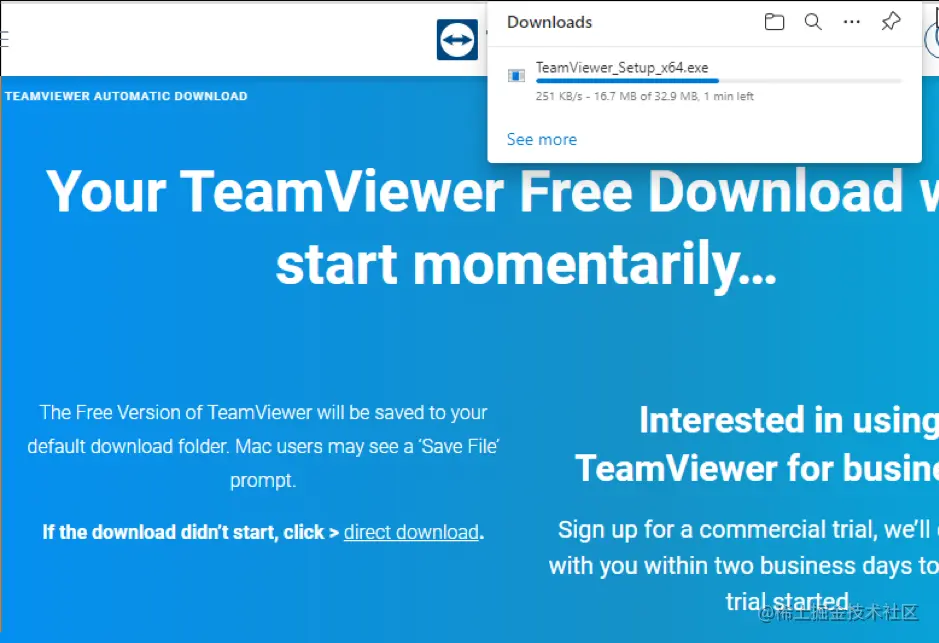 在Windows上,点击此链接下载TeamViewer teamviewer.com/en-us[并](teamviewer.com/en-us)按下 "免费下载 "按钮。