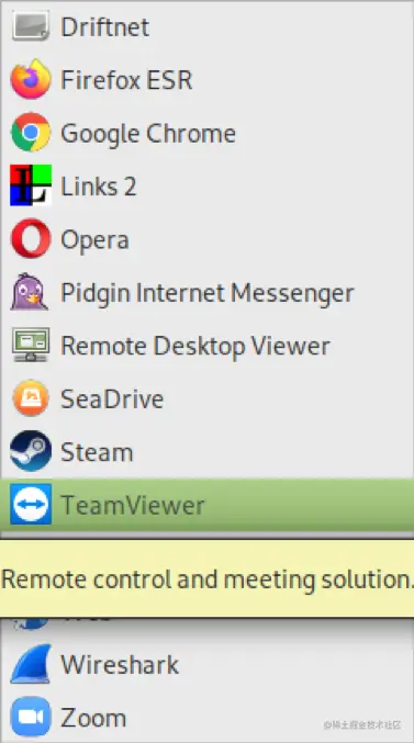 一旦安装完毕,你可以在你的应用程序菜单上找到TeamViewer;按它可以在互联网部分打开该程序。