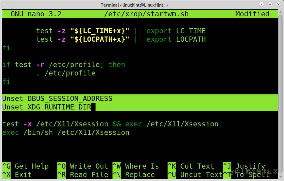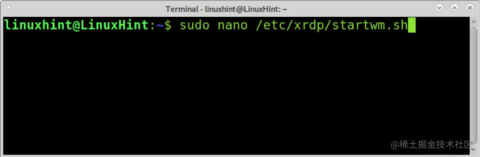 编辑配置文件*/etc/xrdp/startwm.sh*;你可以使用nano,如下所示。