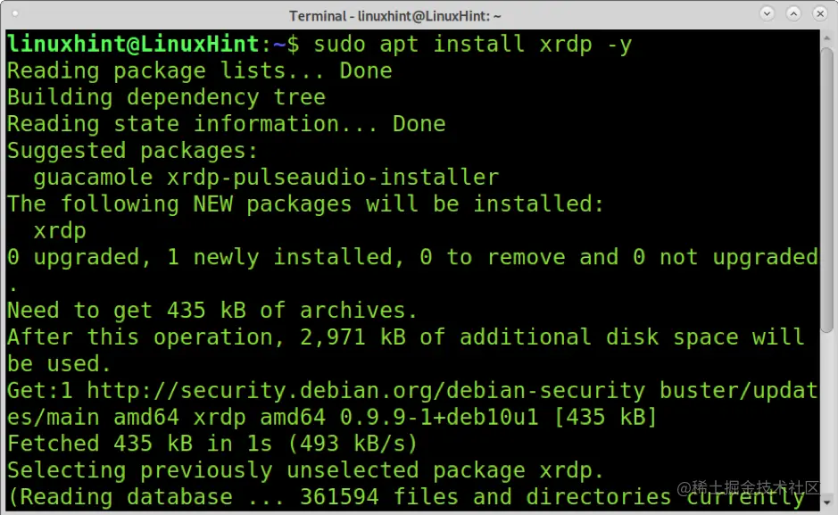 在Debian和其Linux发行版上,你可以使用apt安装XRDP,如下图所示。