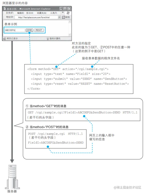 浏览器使用HTTP协议访问Web服务器,HTTP协议定义了客户端和服务端之间交互的消息内容和步骤,基本思路如下: