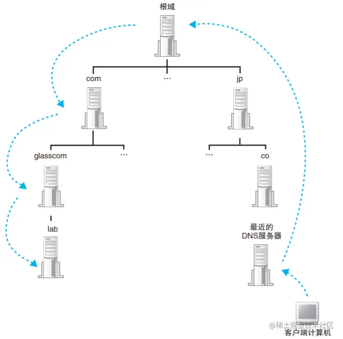 这样DNS服务器就能在上万台DNS服务器中找到目标服务器: