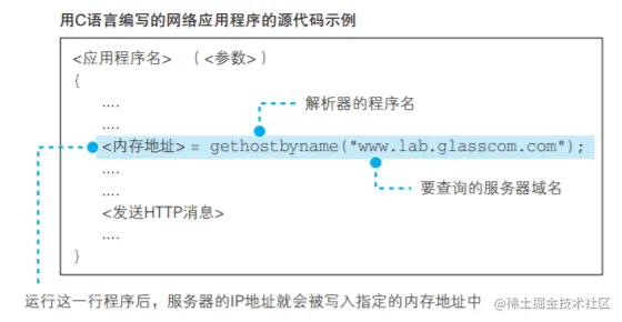 调用之后解析器会向DNS服务器发出查询并收到响应,响应消息中包含查询到的IP地址,解析器将其写入浏览器指定的内存地址中。接下来在向Web服务器发送消息时,取出IP地址和HTTP请求消息一起交给操作系统就可以了。