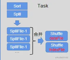 每个Map Task生成一个 Shuffle数据文件和一个index文件,dataFile中的数据按照artitionld进行排序,同一个partitionld的数据聚集在一起,indexFile保存了所有paritionld在dataFlle中的位置信息,方便后续ReduceTask能Fetch到对应partitionld 的数据。
