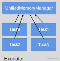 - 设定基本的存储内存(Storage)和执行内存(Execution)区域,该设定确定了双方各自拥有的空间的范围,UnifiedMemoryManager统一管理多个并发Task内存分配 (每个task获取的内存区间为