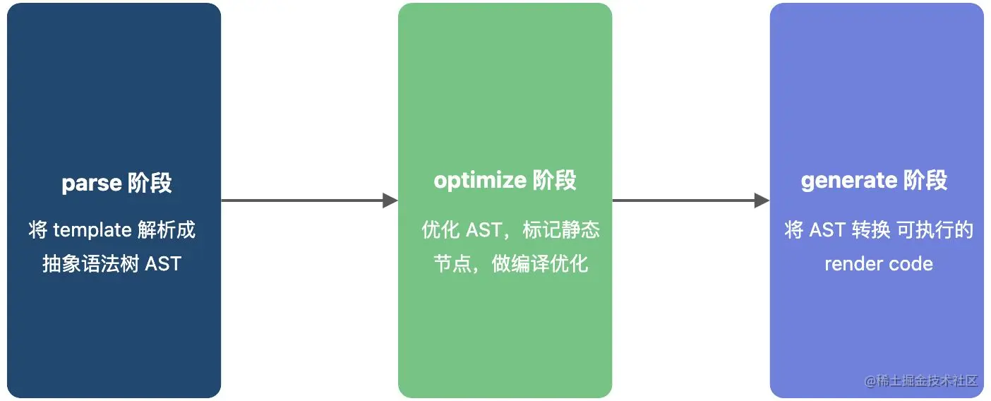 我们再整体来回顾一下 Vue 2.x 版本的编译三部曲: