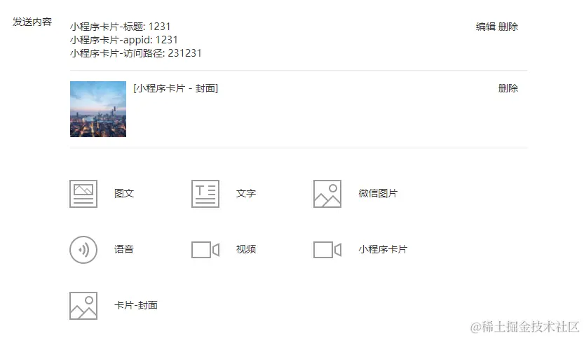 最后 在start 方法中 使用小程序客服接口发送消息