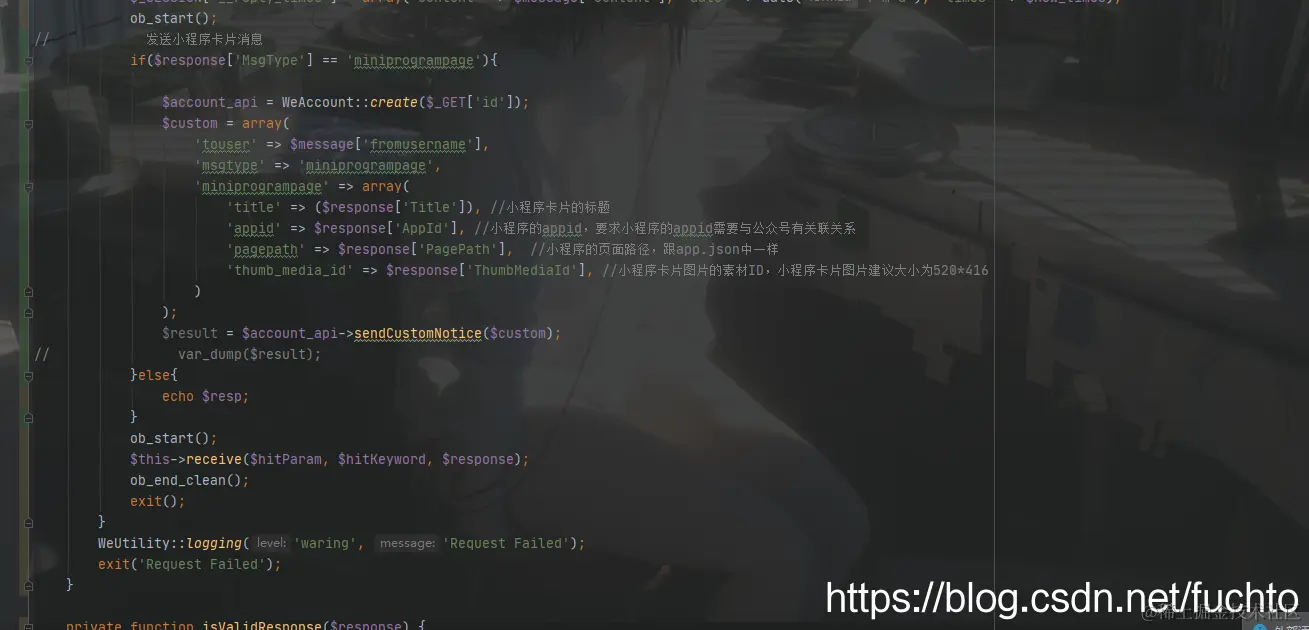 if($response['MsgType'] == 'miniprogrampage'){