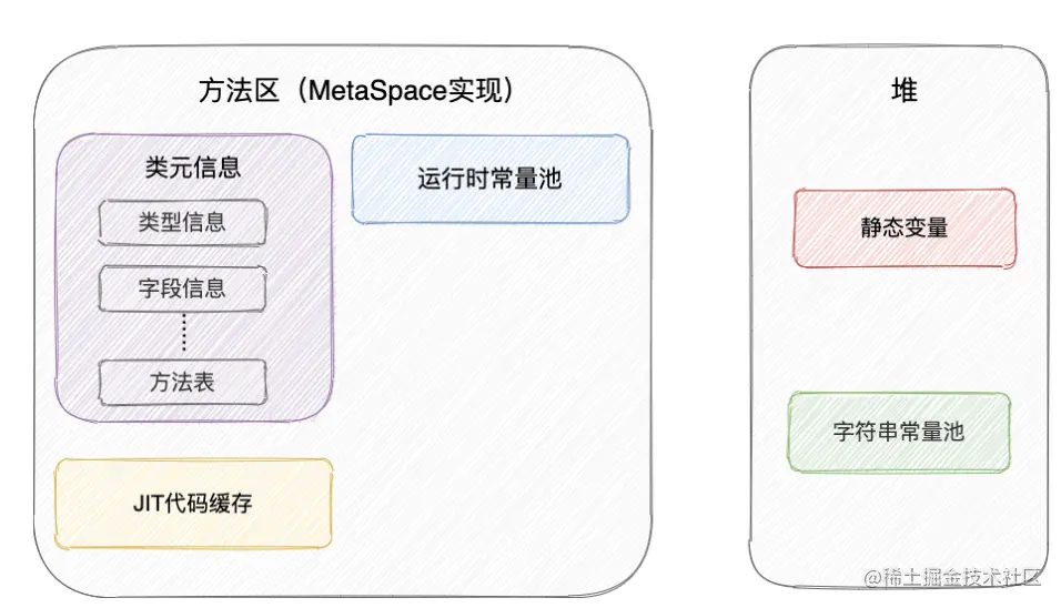 - 方法区也是线程共享的,其存储着类相关信息(类型信息、静态变量、运行时常量池等)