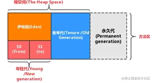 - 新生代(Young Generation):又可分为Eden+Survivor空间