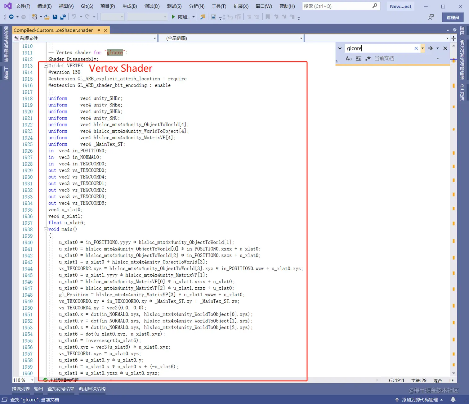 这就是转换出来的Vertex Shader代码,看到入口 main 函数了。