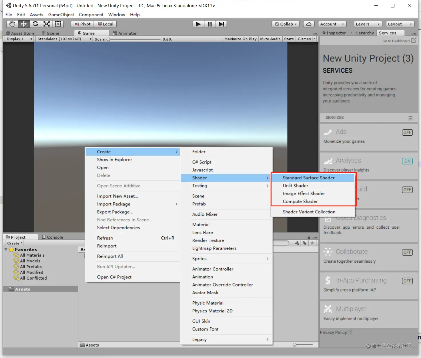 Unity中可选的4种Shader,每一种都是针对特定功能,每一种都是由不同的Vertex Shader、Fragment Shader组成。