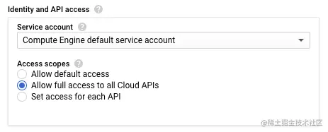 注意:在创建实例时,请确保在 "访问范围 "下启用 "允许完全访问所有云API"。