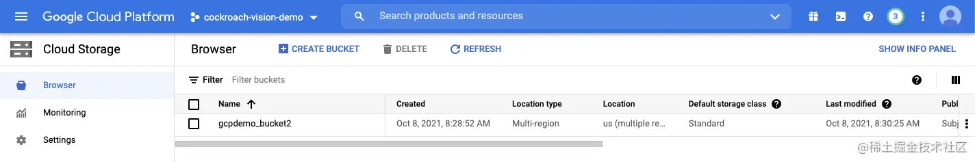 给你的Vision API演示一个新的项目名称。 让我们用 "cockroach-vision-demo",然后点击 "创建 "按钮。
