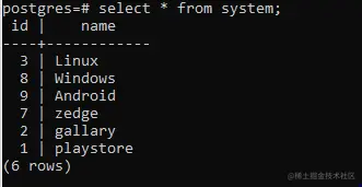每当我们从表中删除任何数据时,只显示被删除的行数,而不显示该行本身。所以要预览具体的行,有一个简单的方法。我们只需在命令的末尾使用 "返回 "关键字和 "*"。考虑一下前面描述的表,"系统"。让我们看看工作情况。