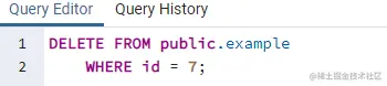 由于显示的是表中的总行数为6,我们将用一个约束条件删除一条行。当我们在查询中提到 "where "之后,有6个数字的id将被删除。这个关键字用于在表中的特定行上应用条件。现在应用这个查询。