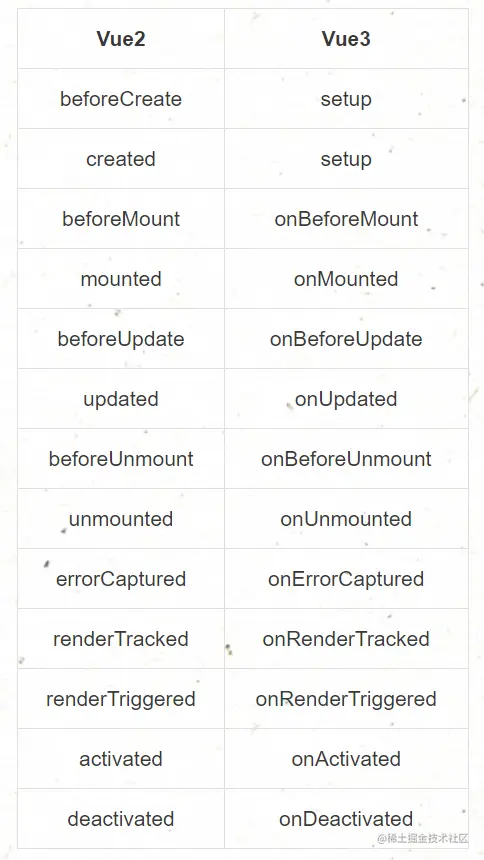 与Vue2相比,Vue3中生命周期函数也发生了变更,总结如下: