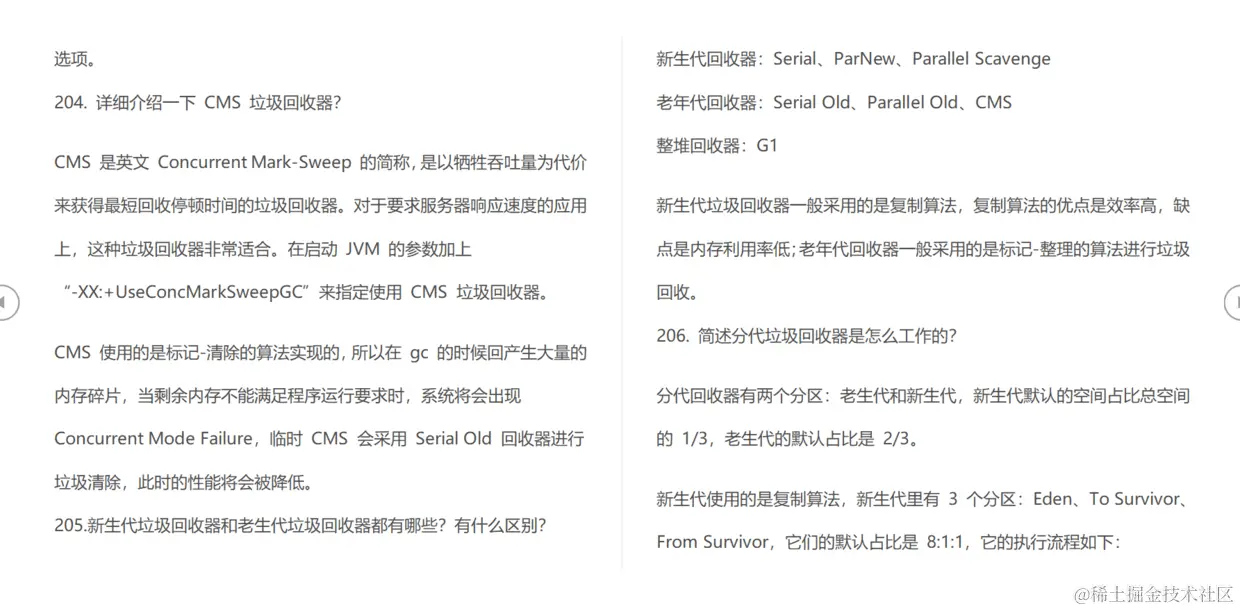 205.新生代垃圾回收器和老生代垃圾回收器都有哪些?有什么区别?
