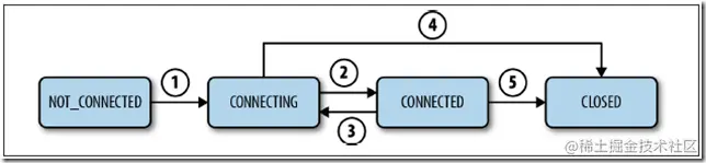 - 如果在会话过期时间以内找到另外一个服务器或者连接到之前的服务器,并确认了这个Session仍然有效,它会转移回CONNECTED状态。