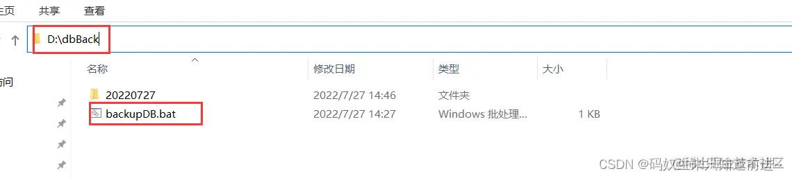 存放的路径实际情况,可以直接双击bat文件运行,就可以看到数据库备份到当天的文件中