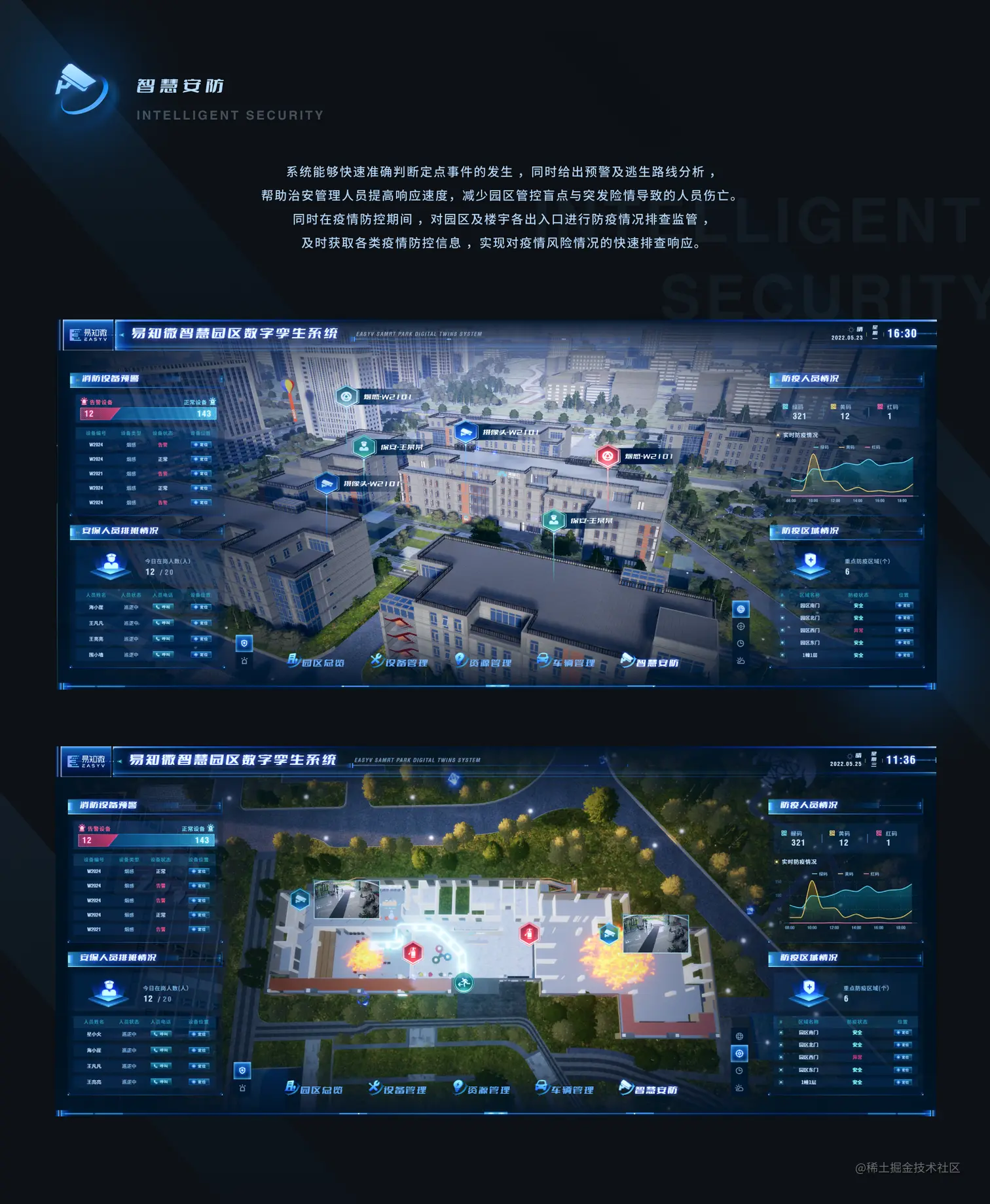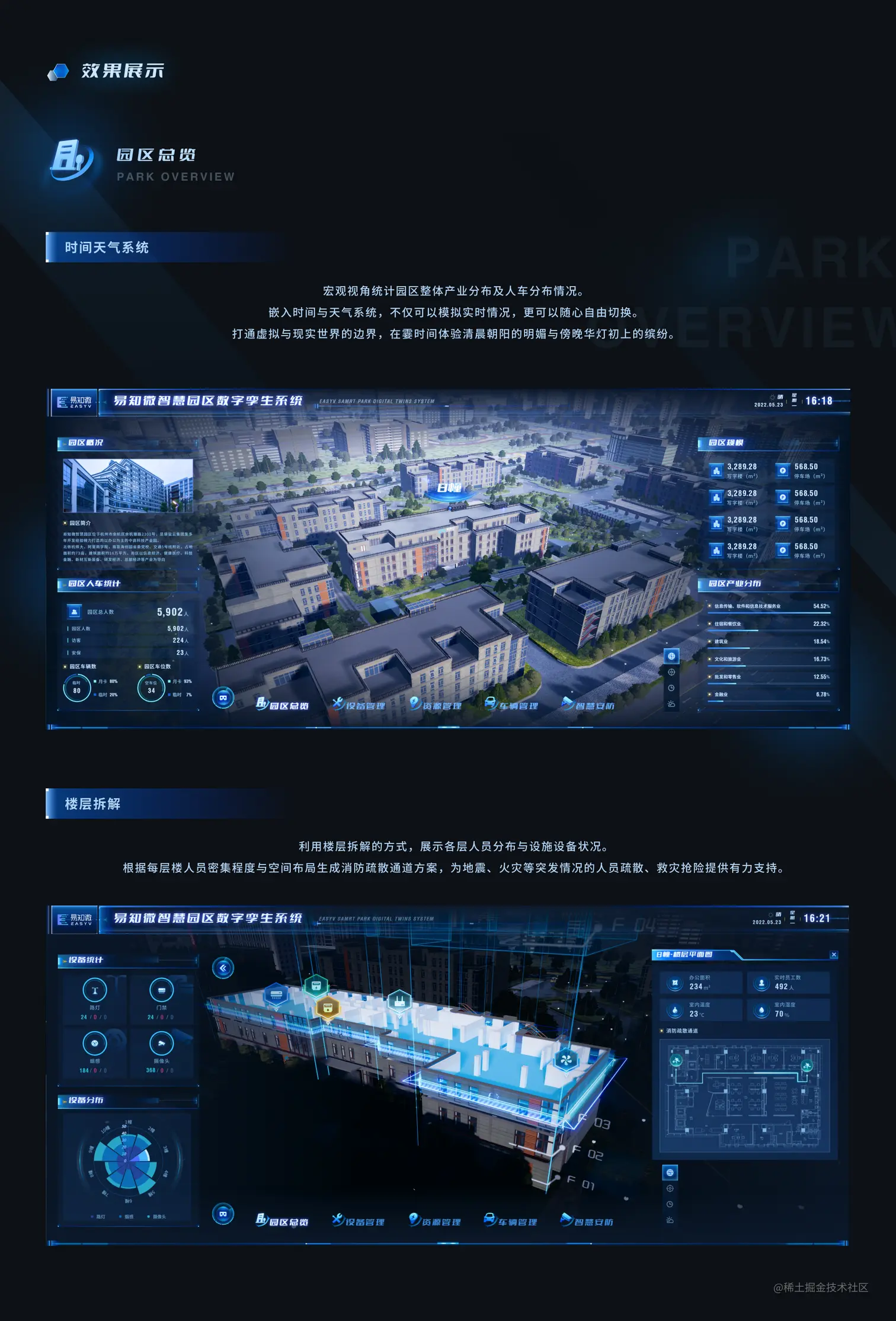 通过直观、动态的形式展示园区楼宇,各楼层及设备的空间分布,运行状况和统计数据,还能对时间、天气进行自由切换,打通虚拟世界与现实世界的边界,宛如大型线上模拟养成~~](easyv.cloud/?t=yrjj)