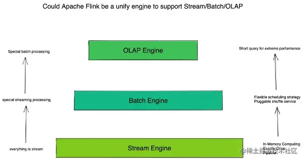 Apache Flink 从流式计算出发,需要想支持 Batch 和 OLAP 场景,就需要解决下面的问题