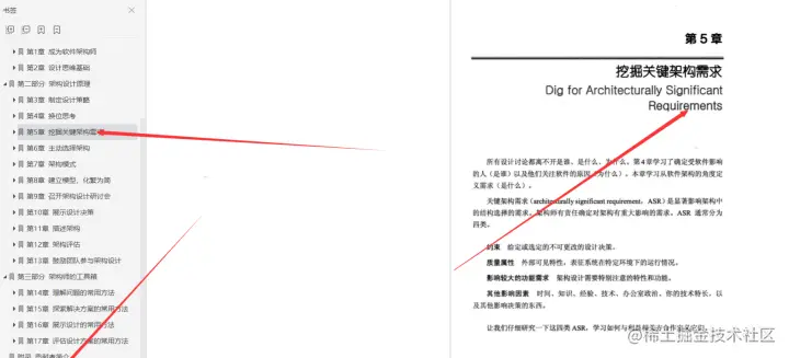 **第5章挖掘关键架构需求;**关键架构需求(architecturally significant requirement,ASR)是显著影响架构中的结构选择的需求。架构师有责任确定对架构有重大影响的需求。ASR通常分为四类。