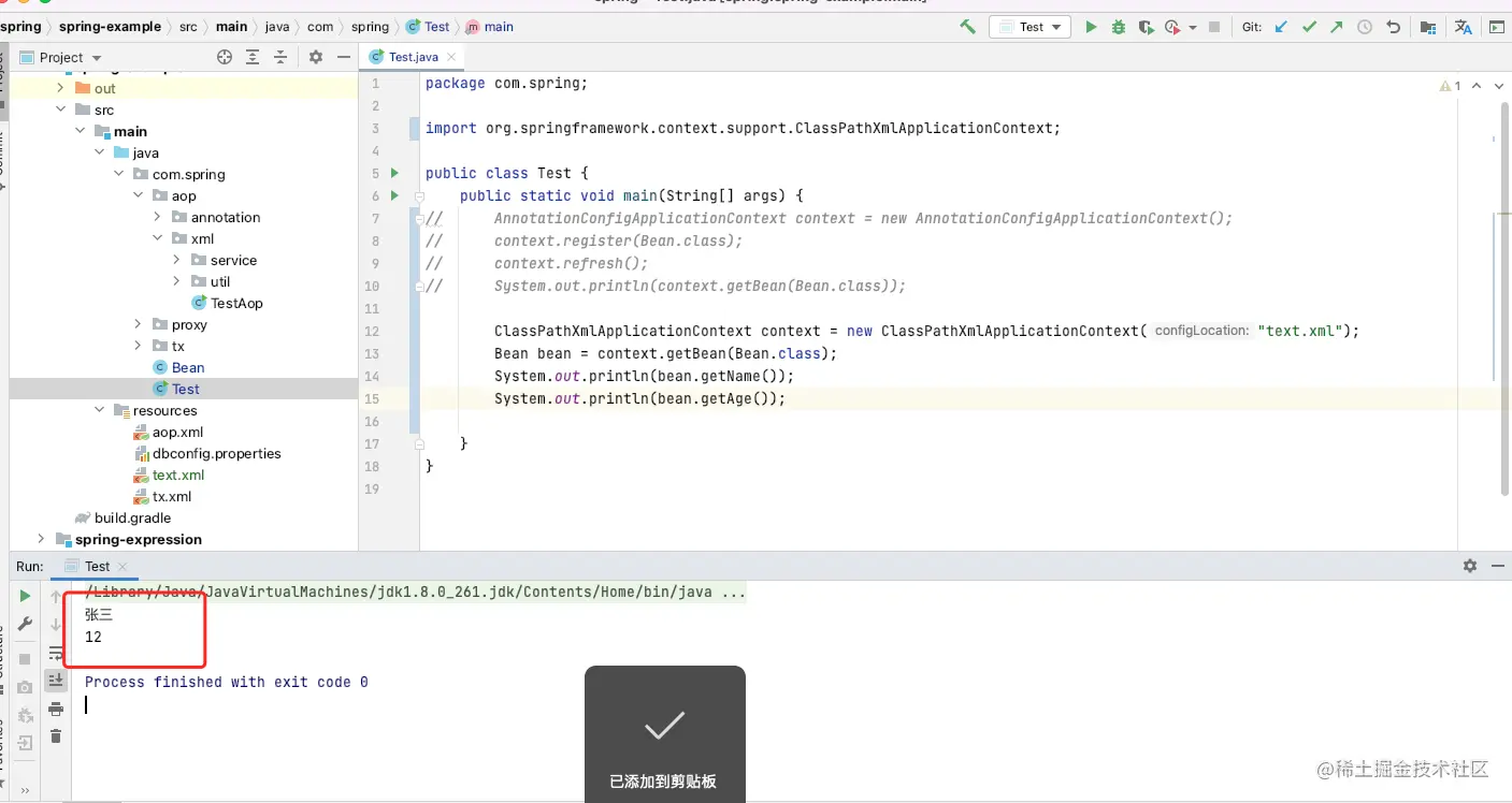 说明spring启动成功并成功将bean进行实例化