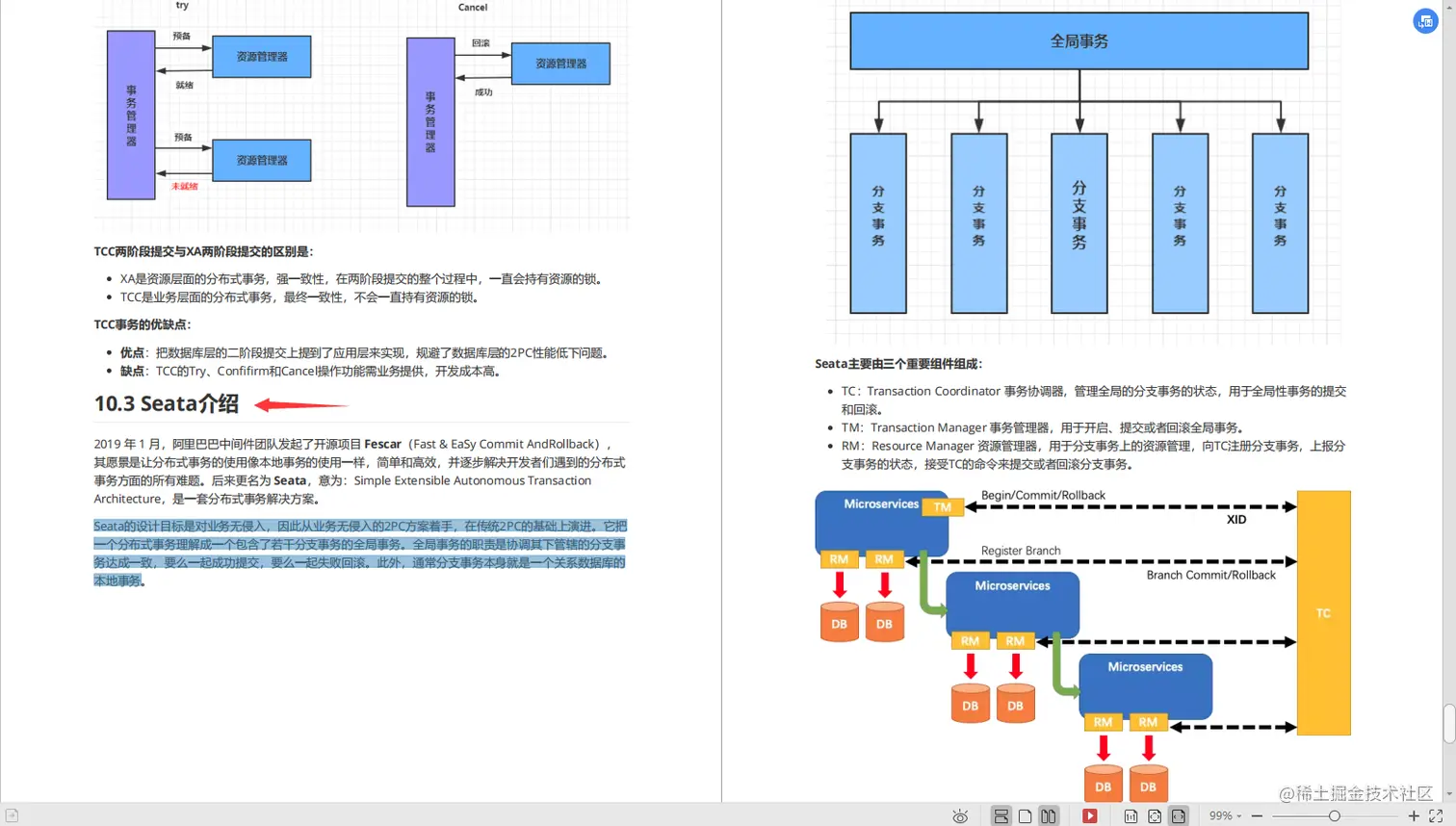 Seata的设计目标是对业务无侵入,因此从业务无侵入的2PC方案着手,在传统2PC的基础上演进。它把一个分布式事务理解成一个包含了若干分支事务的全局事务。全局事务的职责是协调其下管辖的分支事务达成一致,要么一起成功提交,要么一起失败回滚。此外,通常分支事务本身就是一个关系数据库的本地事务