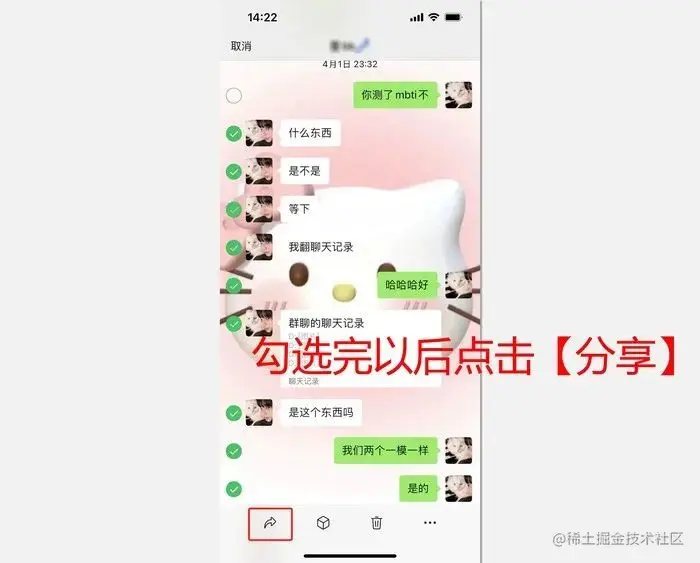只需要让你的好友帮忙操作或者你登录他的微信,找到你们两个的聊天框,长按点击【多选】,选择你想要恢复的聊天记录。