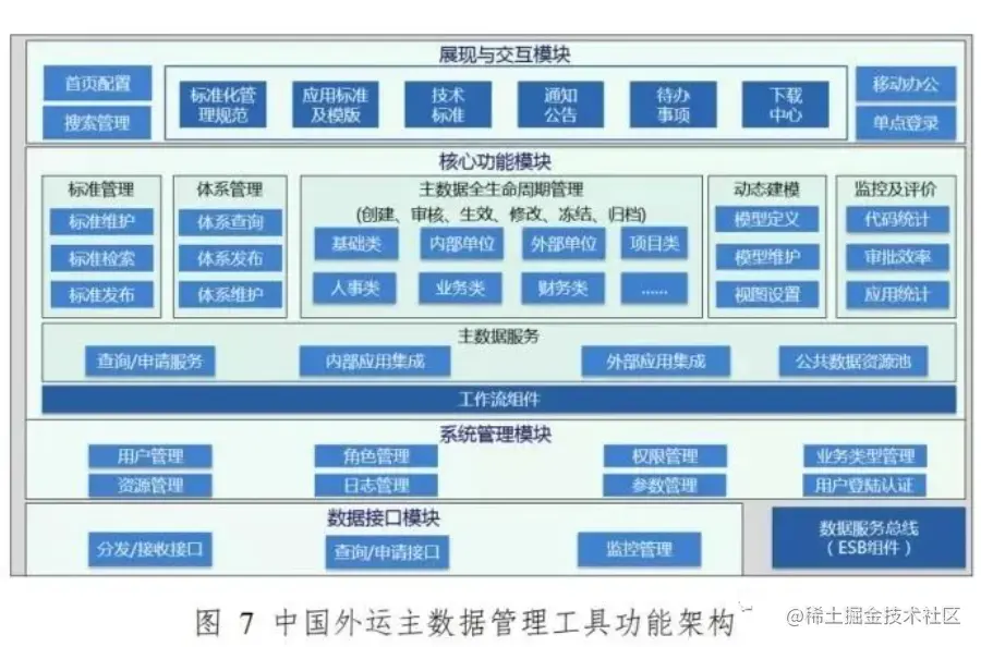 主数据管理工具主要包括数据建模、数据整合、数据管理、数据服务基础管理、标准管理等功能模块。