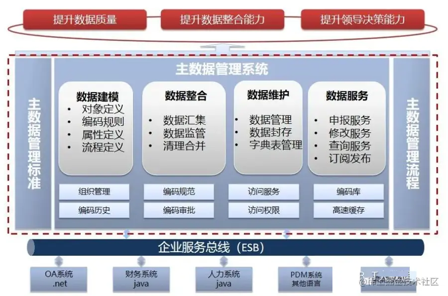 4) 完善IT系统架构和企业数据架构,助力数据应用和管理:通过主数据建设,将为企业在数据应用与管理奠定基础。从 IT 建设的角度,主数据管理可以增强 IT 结构的灵活性,构建覆盖整个企业范围内的数据资产管理基础和相应规范,并且更灵活地适应企业业务需求的变化。此外,主数据质量的提高也能够为后期数据集成和数据整合打下良好的基础。