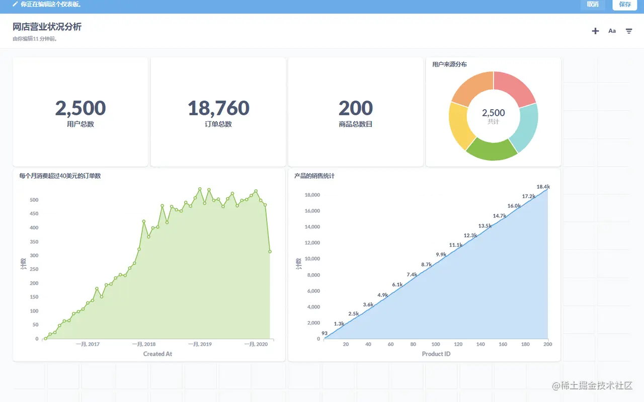 数据分析可帮助团队做出更好的决策。使用强大的可视化工具 Metabase,您可以快速将数据转换为易于理解分析报表页面。使用 Metabase 的直观界面,可消除数据“噪音”,并使团队人员更加专注于核心数据信息。